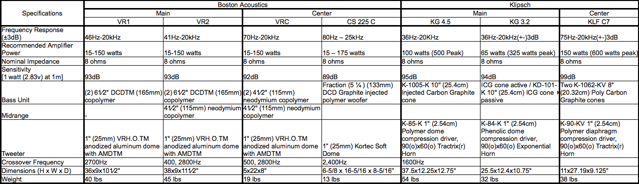 These were my first “good speakers”. When I was building my HT, I was taking lot’s advice from a friend of mine, who was more knowledgable in this field. The first speakers I purchased were the VR2’s. He saw these at AudioAdvisor at a really nice price. Guess they were clearing out inventory. I had previously owned Boston desktop speakers, and liked them. So, when I saw these (and they looked really nice), I went ahead and picked them up. I can definitely say they are fine speakers.