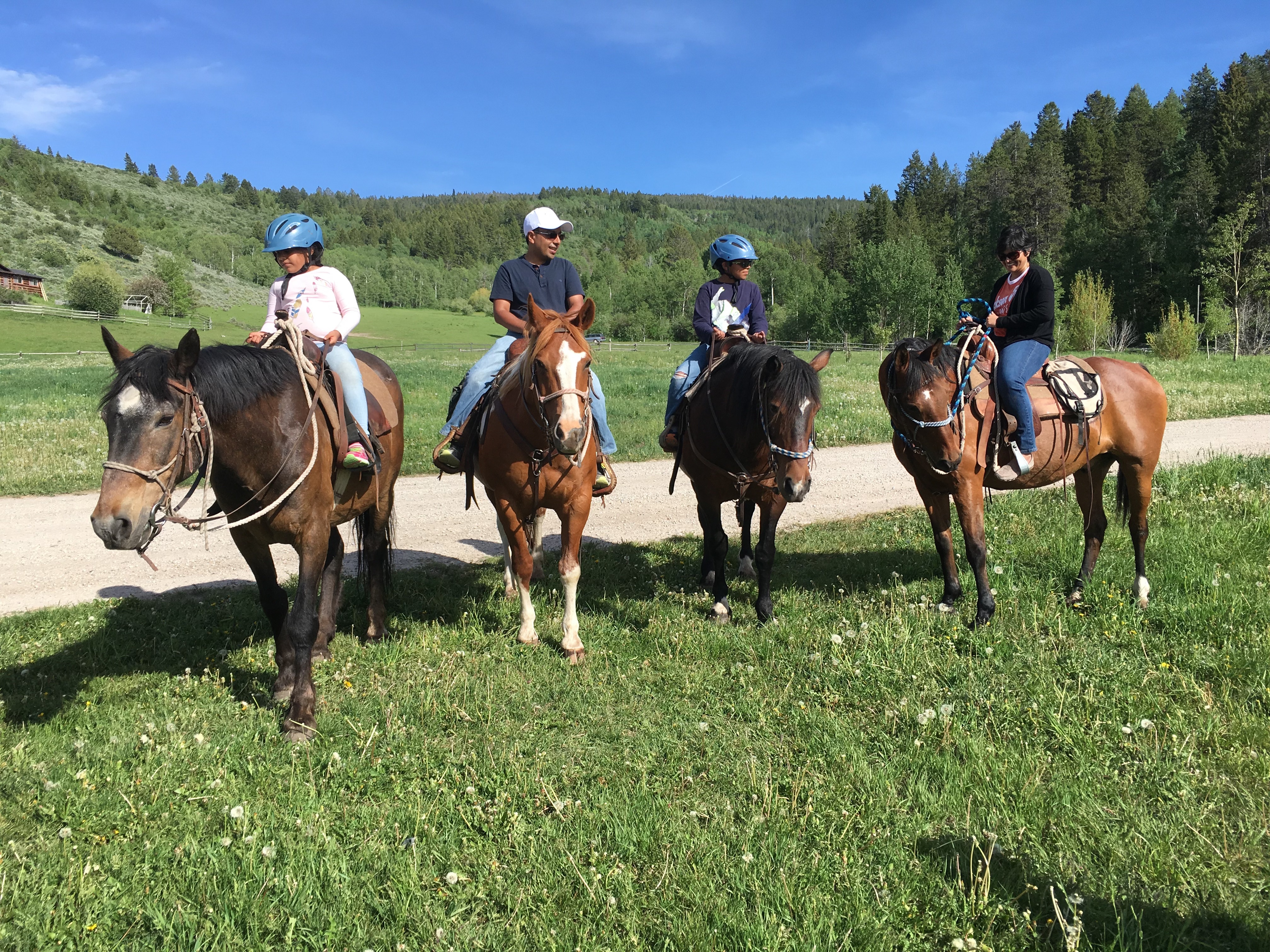 Day 3: June 5th: Monday: Mesa falls, Horse back riding: Had breakfast and headed out to Mesa Falls on Idaho 32, then Idaho 47. Hiked first to the Upper Mesa falls, and then to the Lower Mesa falls. Grabbed lunch at Wrap & Roll and headed to Linn Canyon Ranch for Horse Riding. The kids got an hour lesson after which we all headed to the trail. Our horses were: Fuzzy, Buddy, Phinea and Roscoe.