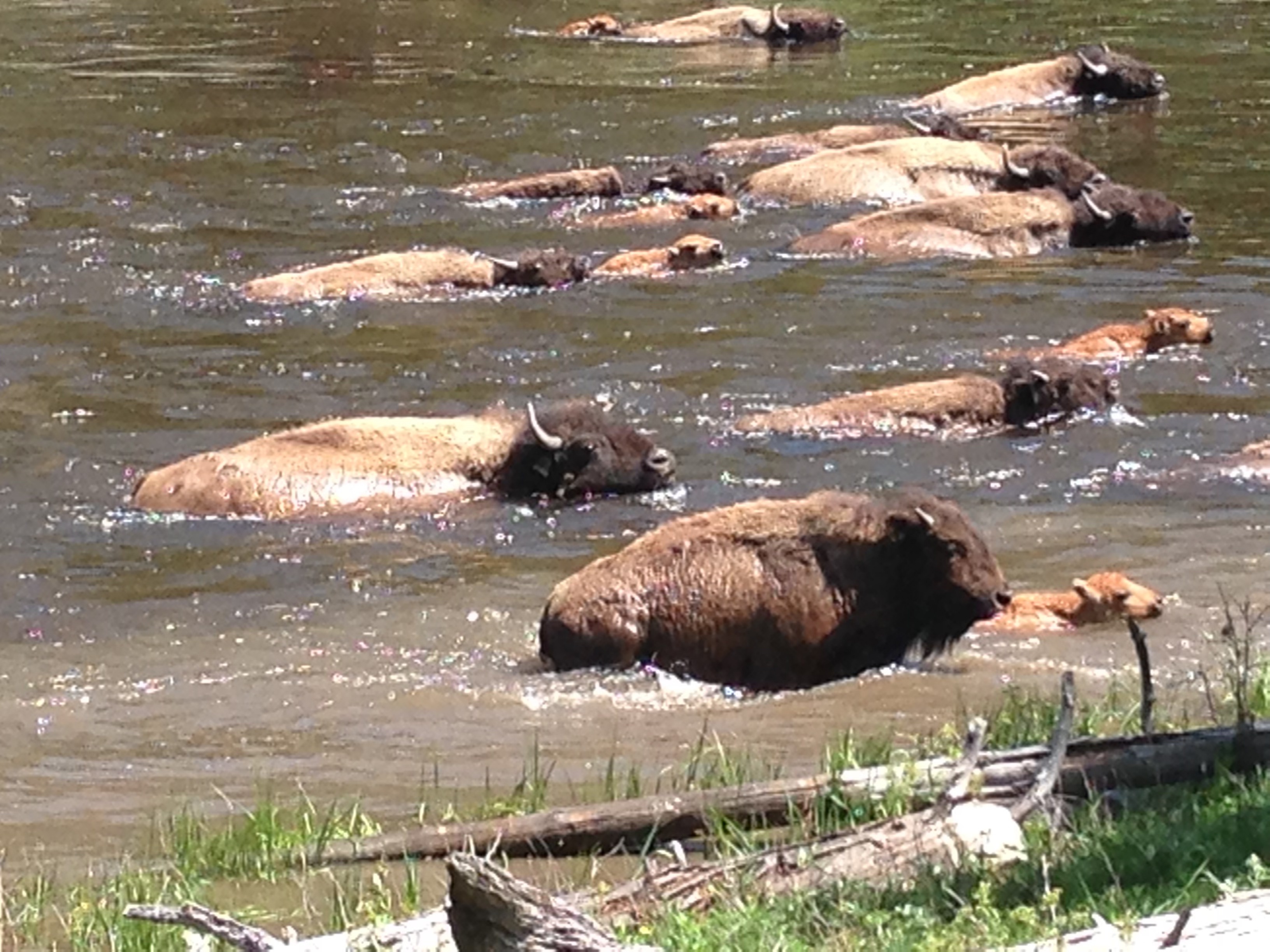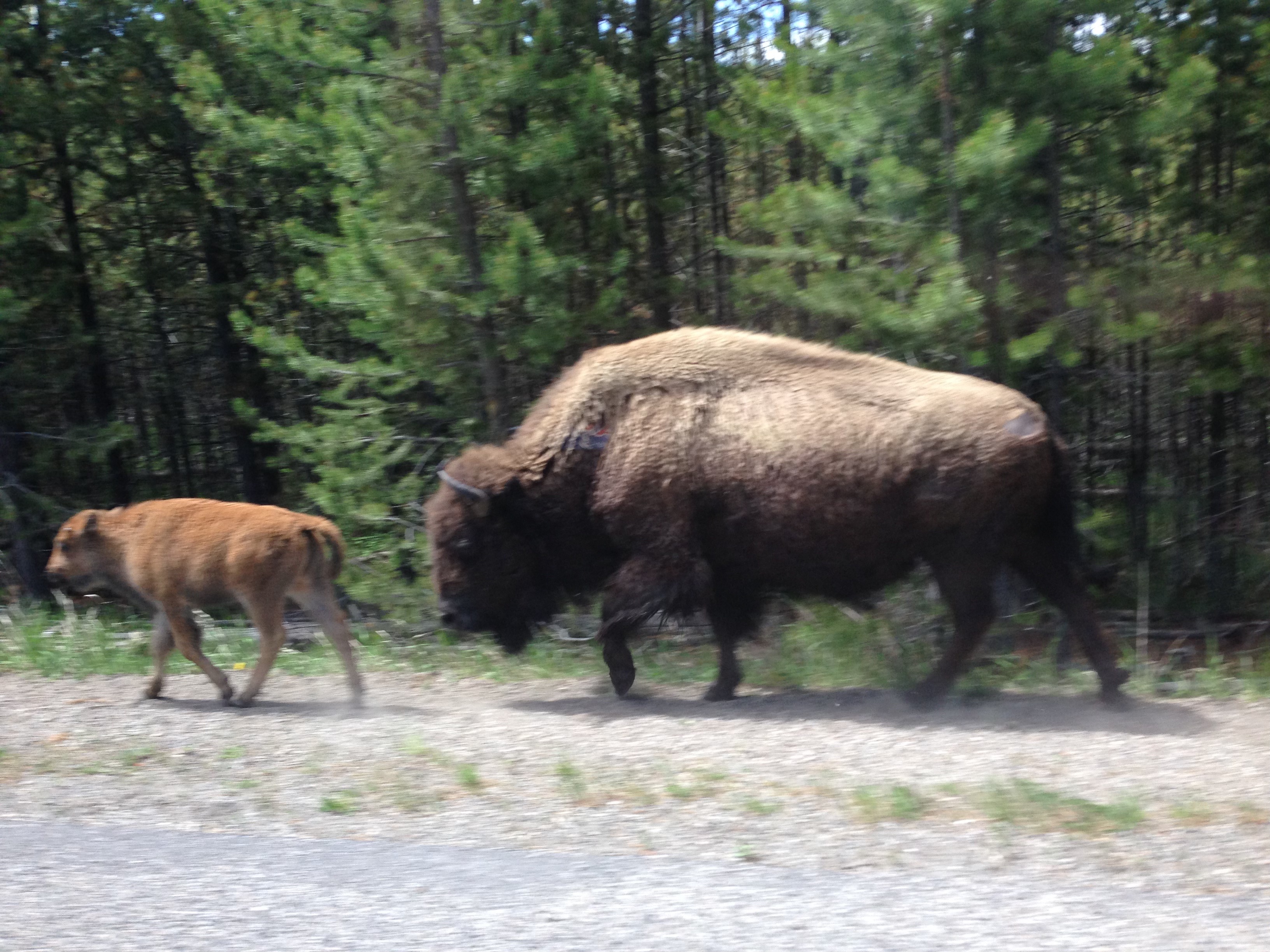 We had breakfast in the room and headed out to Yellowstone via Idaho 32. Drove thru Targhee national forest and entered via the West entrance. As we entered the park we had a herd of bison come down the hill and run alongside us. It was a fascinating experience. Once the bison were past us, we stopped at a “picnic spot” by the river and had our lunch. Our loop took us thru:
