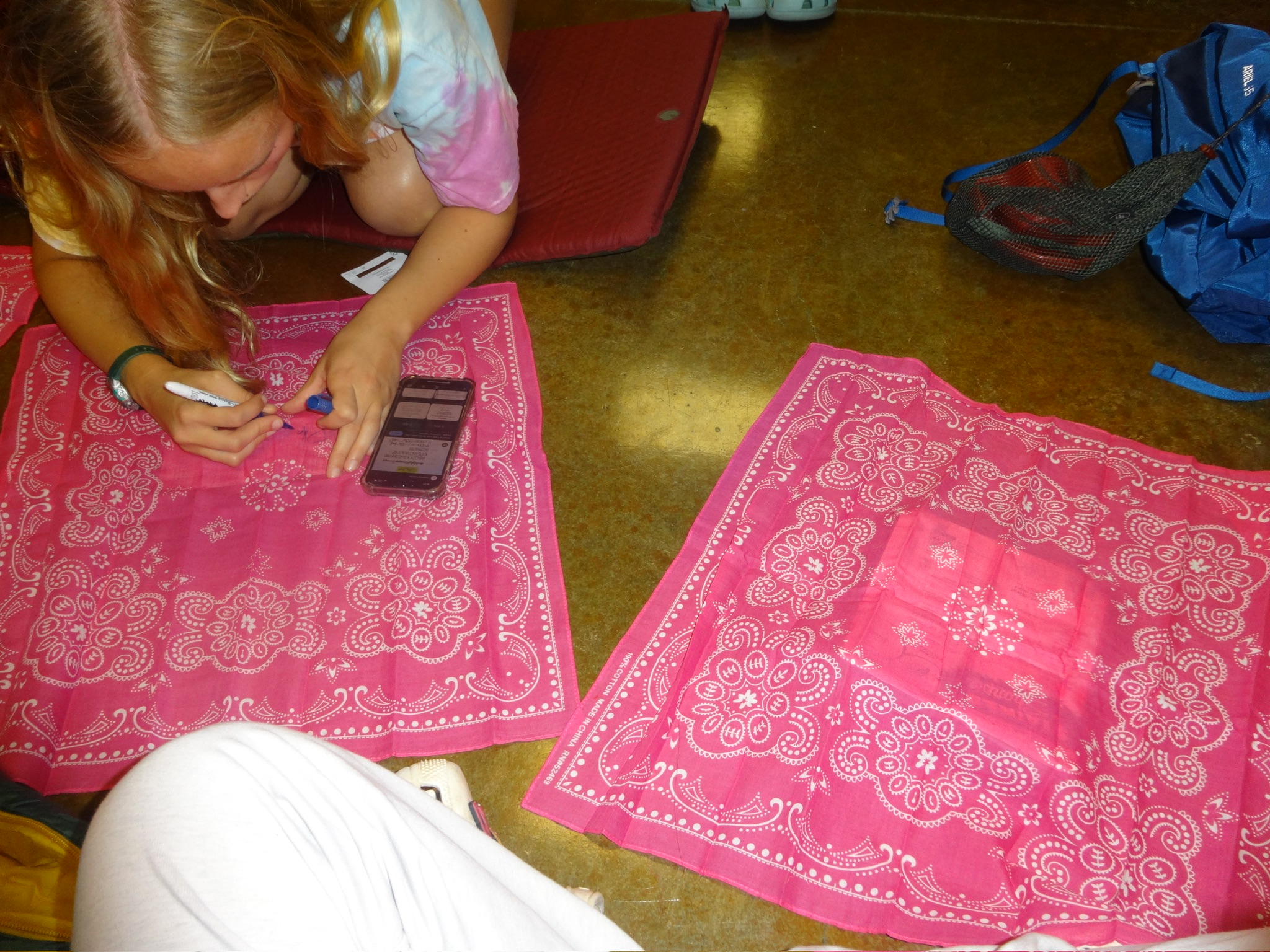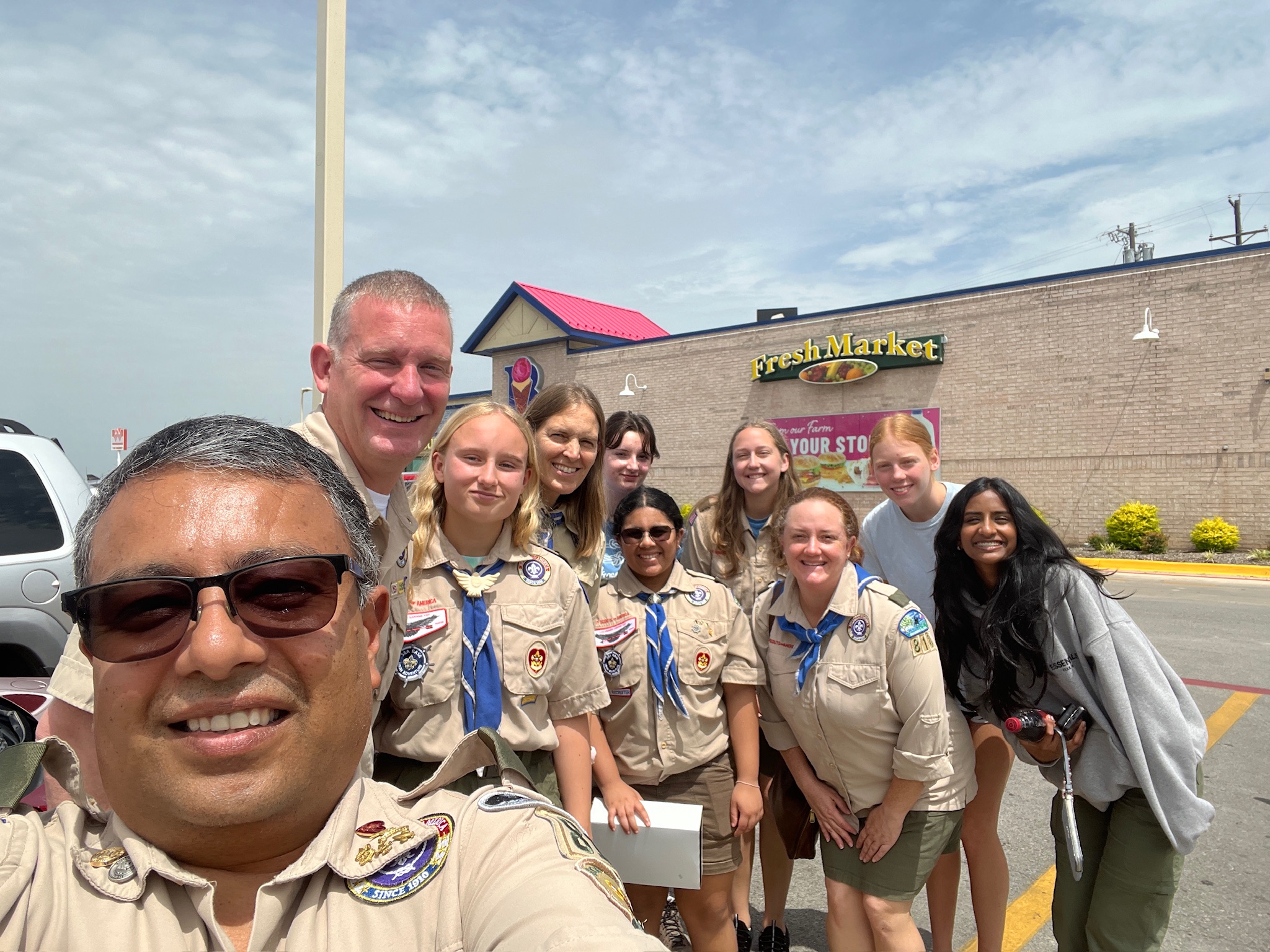 I took over the driving responsibilities after Braum’s, and drove to Amarillo. It was a good smooth drive with one gas/restroom stop. We reached the “Kwahadi Museum of the American Indian”. This will be our stop for the night. We were given a tour of the museum, and a brief history of the museum, following which we set up our stuff in the keva. There was another troop in the museum, these boys were returning from Philmont. The girls had picked up some neckerchiefs from Walmart, and spent some time customizing them.