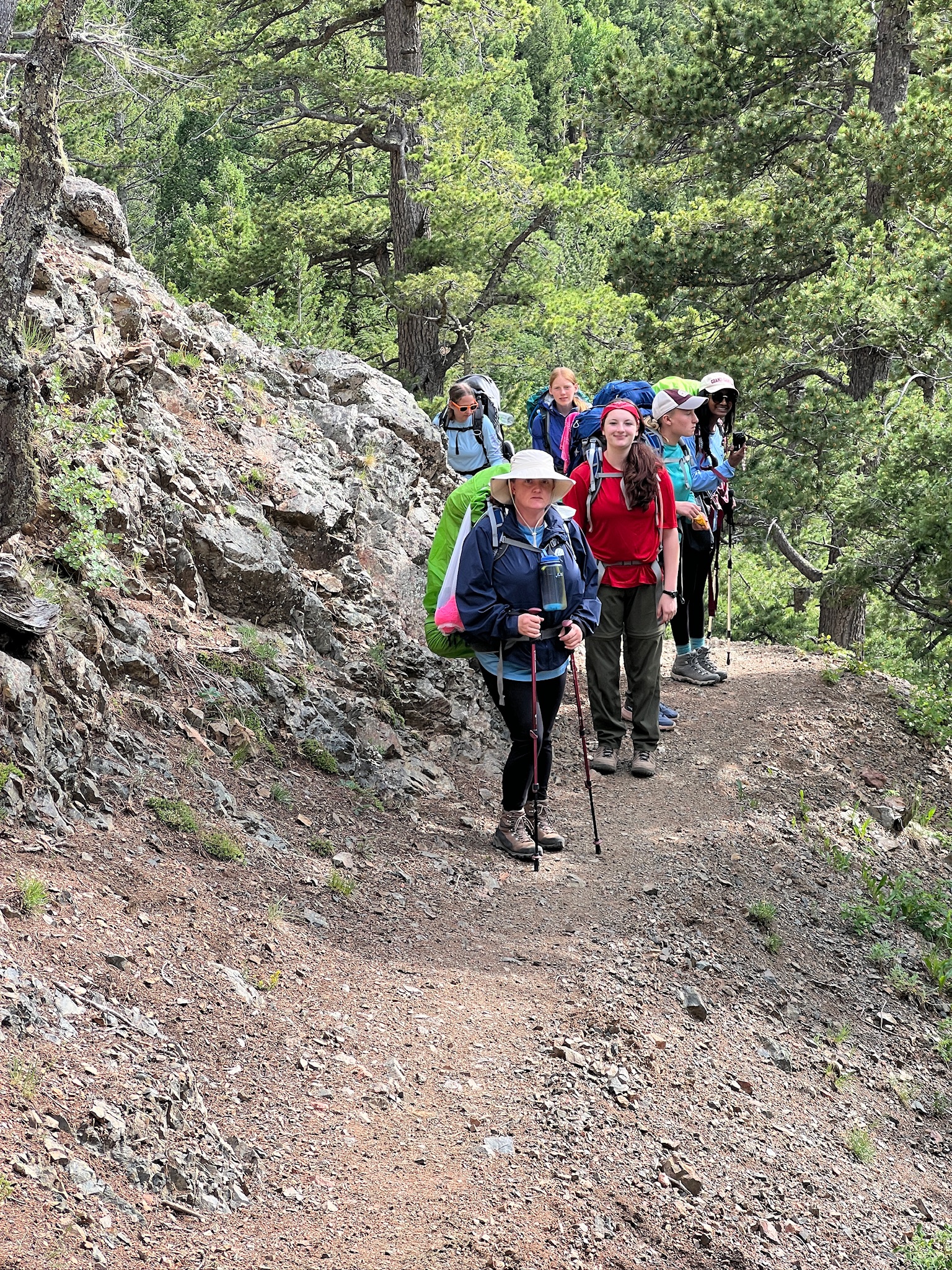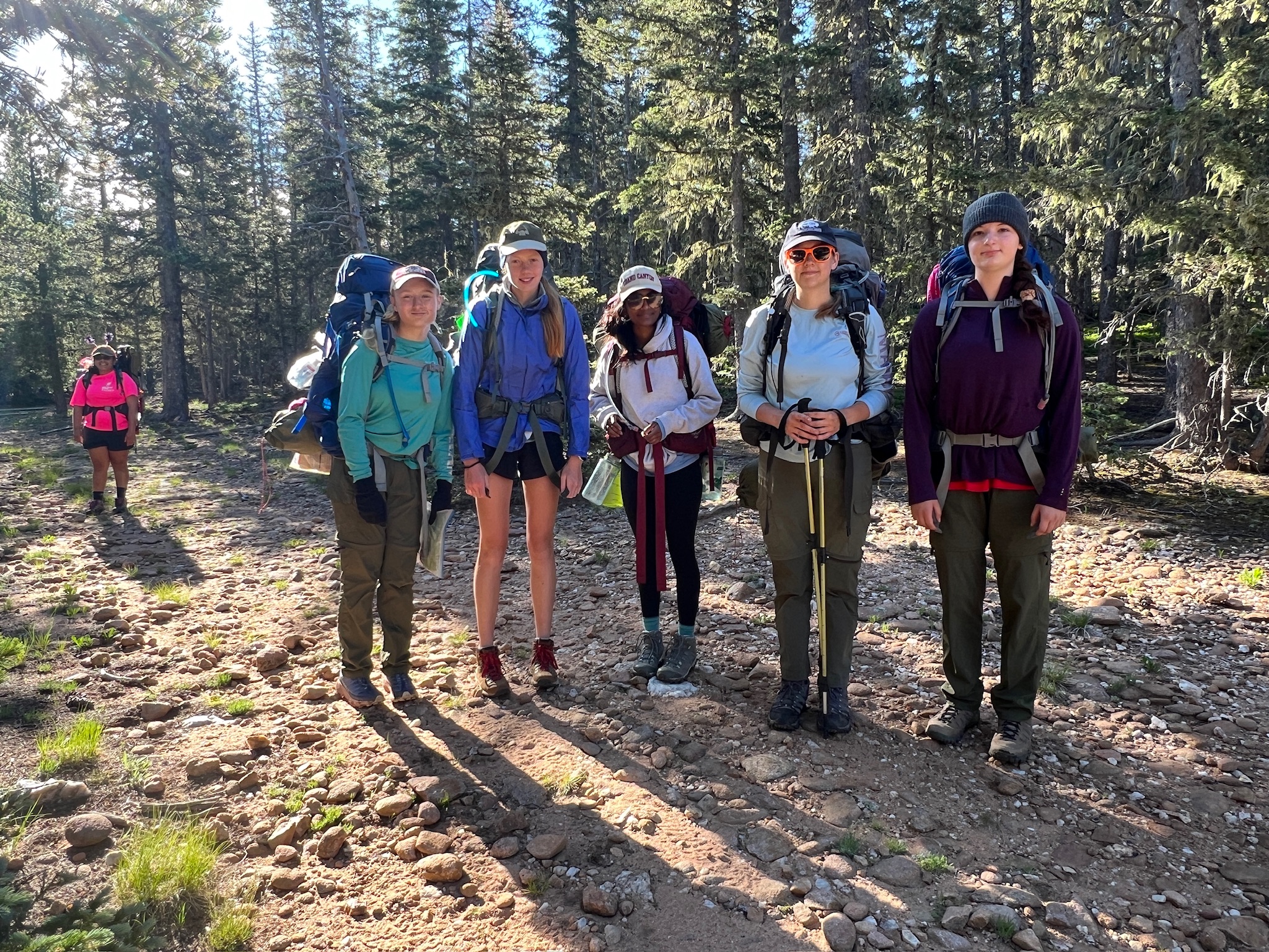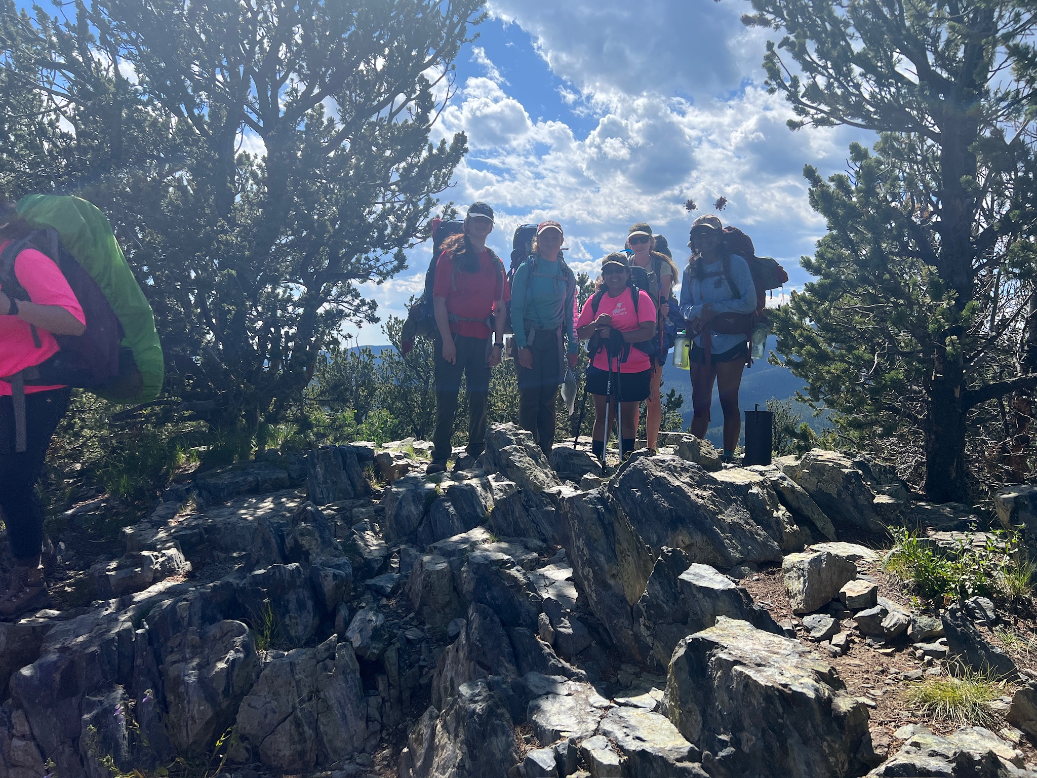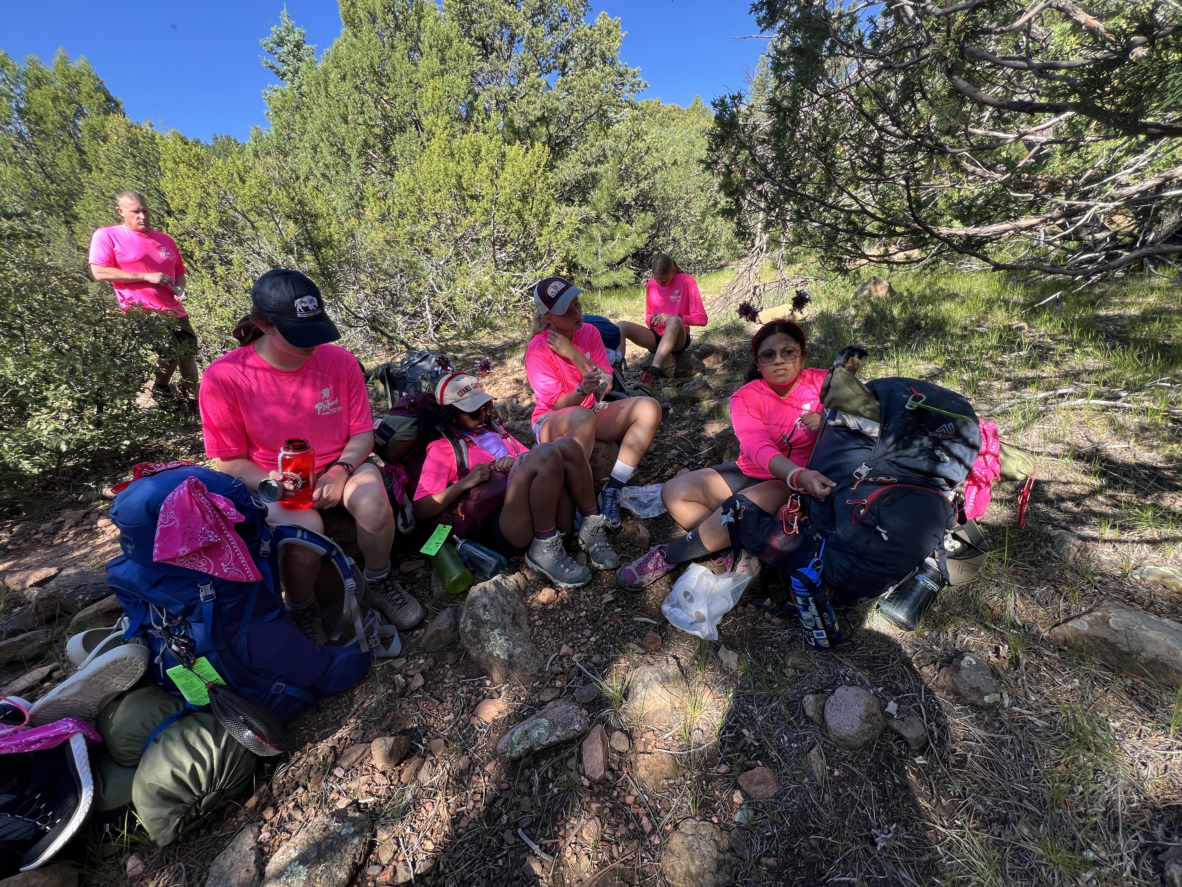 Close to the top, as we were done with our switchbacks, we took a 20min break, and had the wilderness pledge talk. We will reflect for a few minutes. It’s 10:30am. We are doing good on time, and the girls are quite motivated.