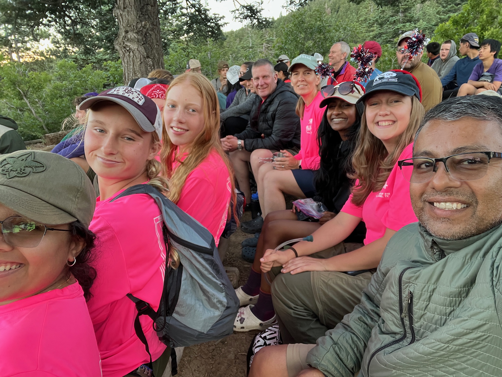 After some deliberation, we all decided to go up to Trail peak. This will be a harder challenge than we what we faced the previous days. As we started hiking up the mountain, it got steeper… I decided to count steps to keep me distracted, and also to estimate how far up we reached. Trail peak is 10,250ft. I’m estimating 3000 steps to the top. Im at 1500 steps. It’s 10:46 am. Strenuous, but glad we are doing it. It’s 11:26am. Taking a bit of a break. Getting some sugar in the system. I’m at 2200 steps. 11:40am. Taking a 20 min break to let one of our scouts catch her breath. We are almost at the peak. We can see it from here. I’m at 2600 steps. After the break, we hike on, and reach the peak at around 12;30pm. Awesome! We made it!