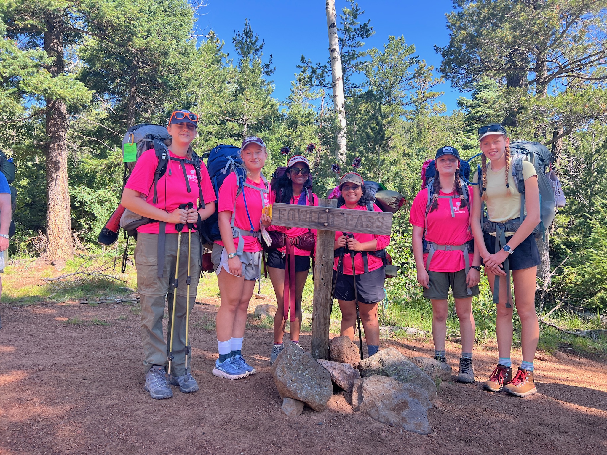 We are up at 5:45am. Cleaned up camp. Said our goodbyes to Lily. We headed out around 8am. All of us used the red roof and then we hiked on. It was a pretty strenuous hike up to Fowler pass (9000ft). We took a 20 min break.