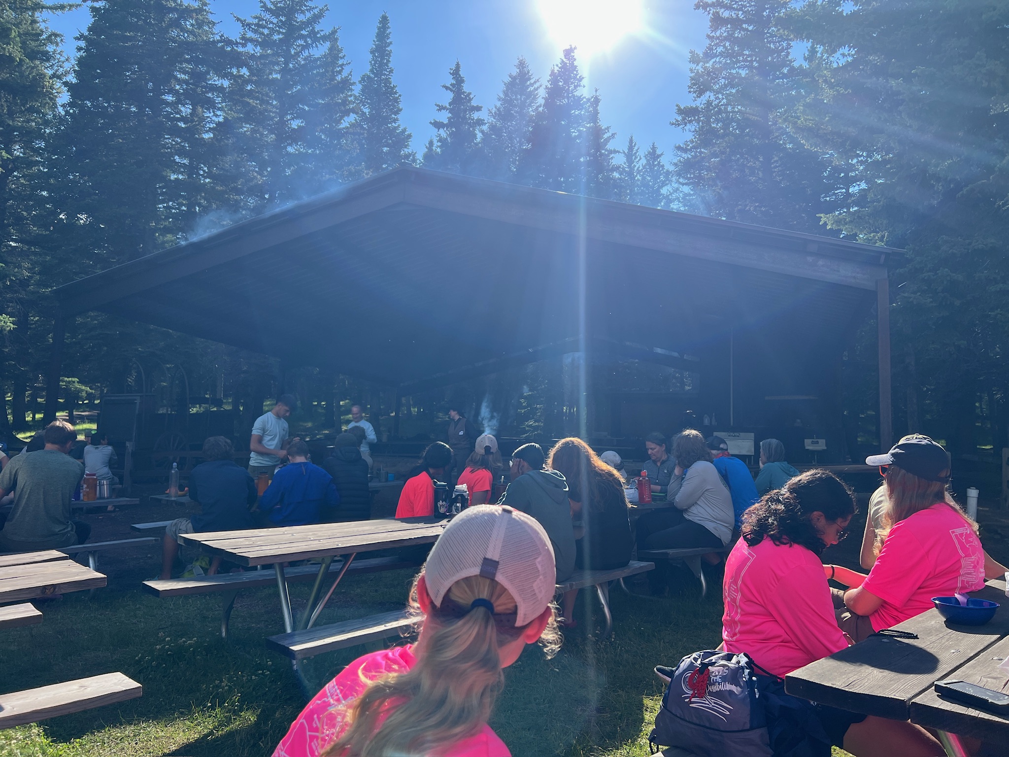 The rain cleared away and we were back to sunny once again. We lined up our backpacks in front of the staff office and spent some time doing our religious prayers. After this we are going to have our chuck wagon Dinner at 5PM.