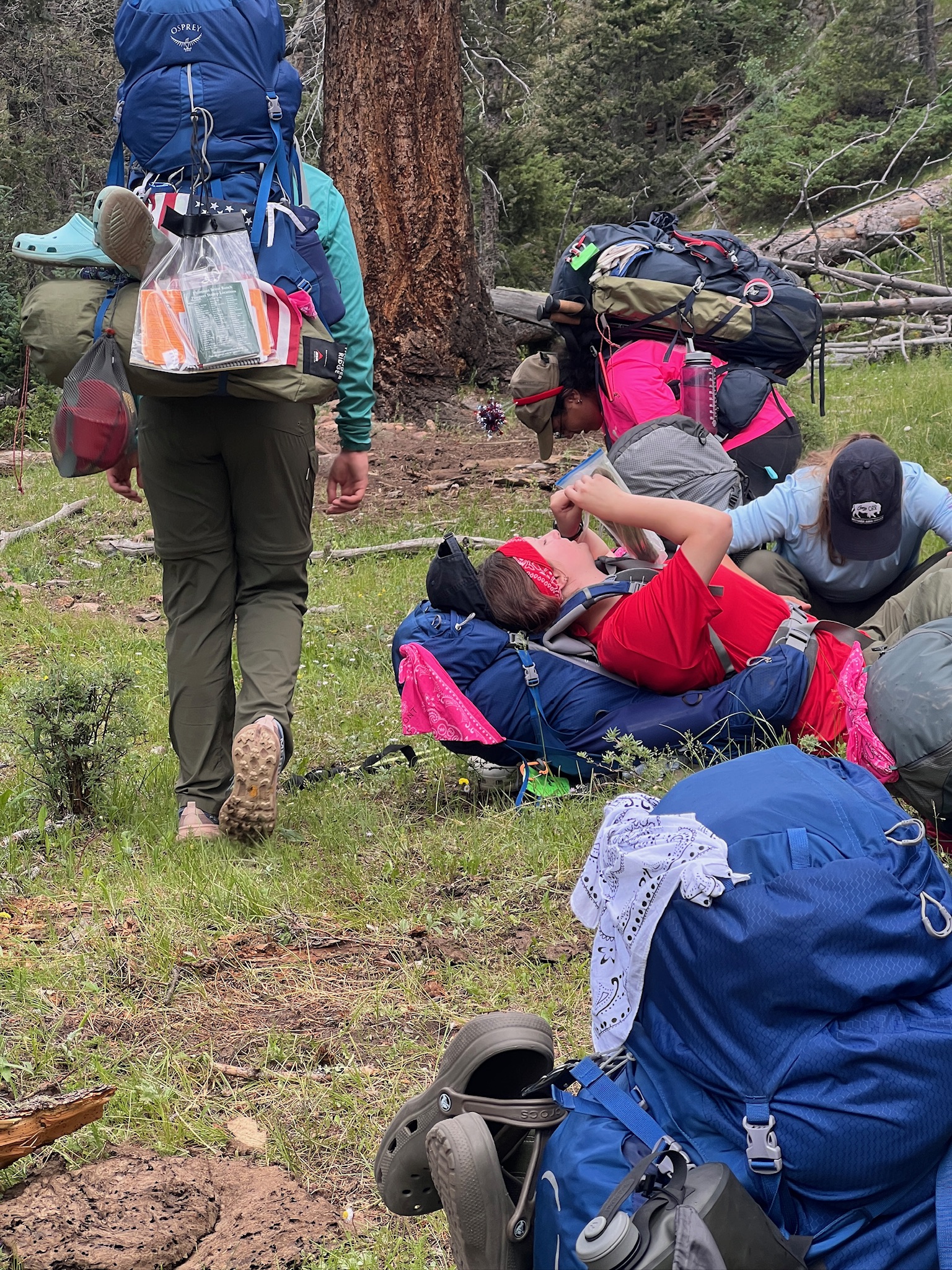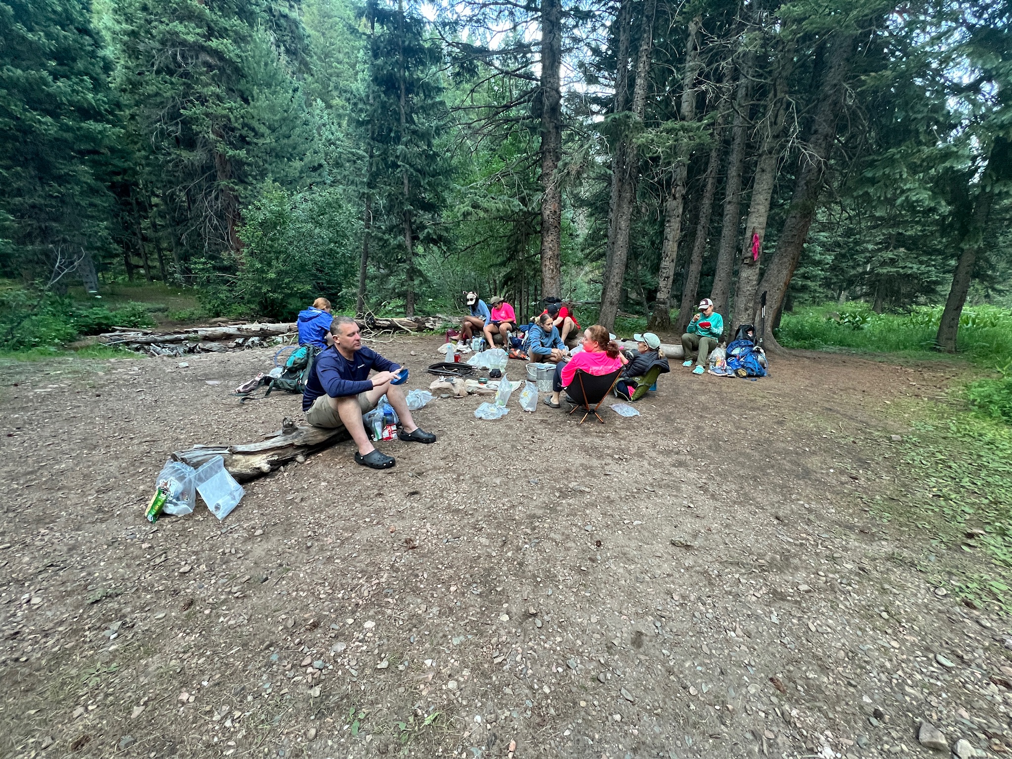 I think I slept well… it was cold overnight. Woke up at 6:10am. The crew is performing exceptionally well. We packed up, had breakfast and are ready to hike on. The plan is to go to crooked creek, check out the campsite, use the swap box, see if we can do any activities and then hike on to Black mountain. Not yet sure if we will hike up the mountain or go by the creek.