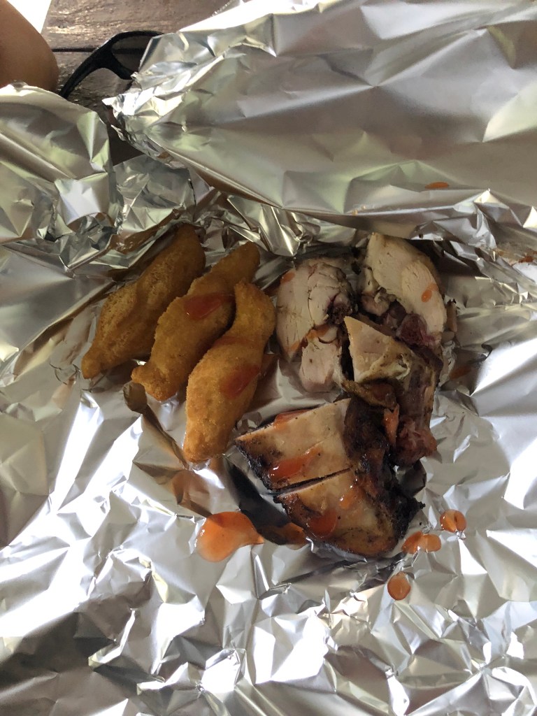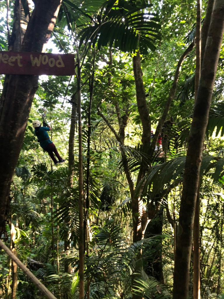 Day 3: We stopped at Montego Bay, Jamaica. We booked the extreme zip-line adventure. Our tour guide was a pleasant and funny young man, who keep us entertained while explaining the history of the area as we went to the zipline location from the port. After ziplining, we “had to have” some Jerk Chicken. It was yummy.