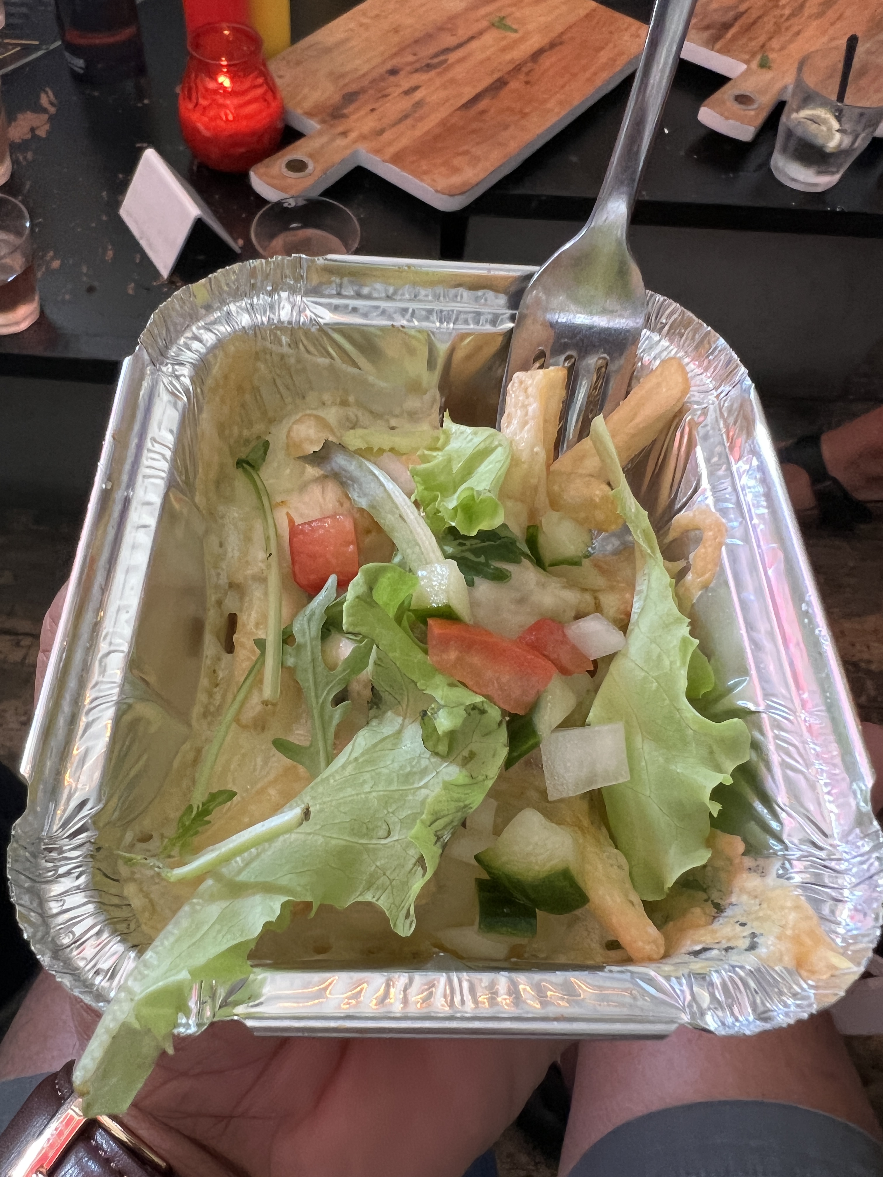 On next to Jupiter where we had Kapsalon with Rosa wine. It is a Portuguese derived food, basically means hairdresser food! Mine was a spicy chicken covered with French fries. Amazing!