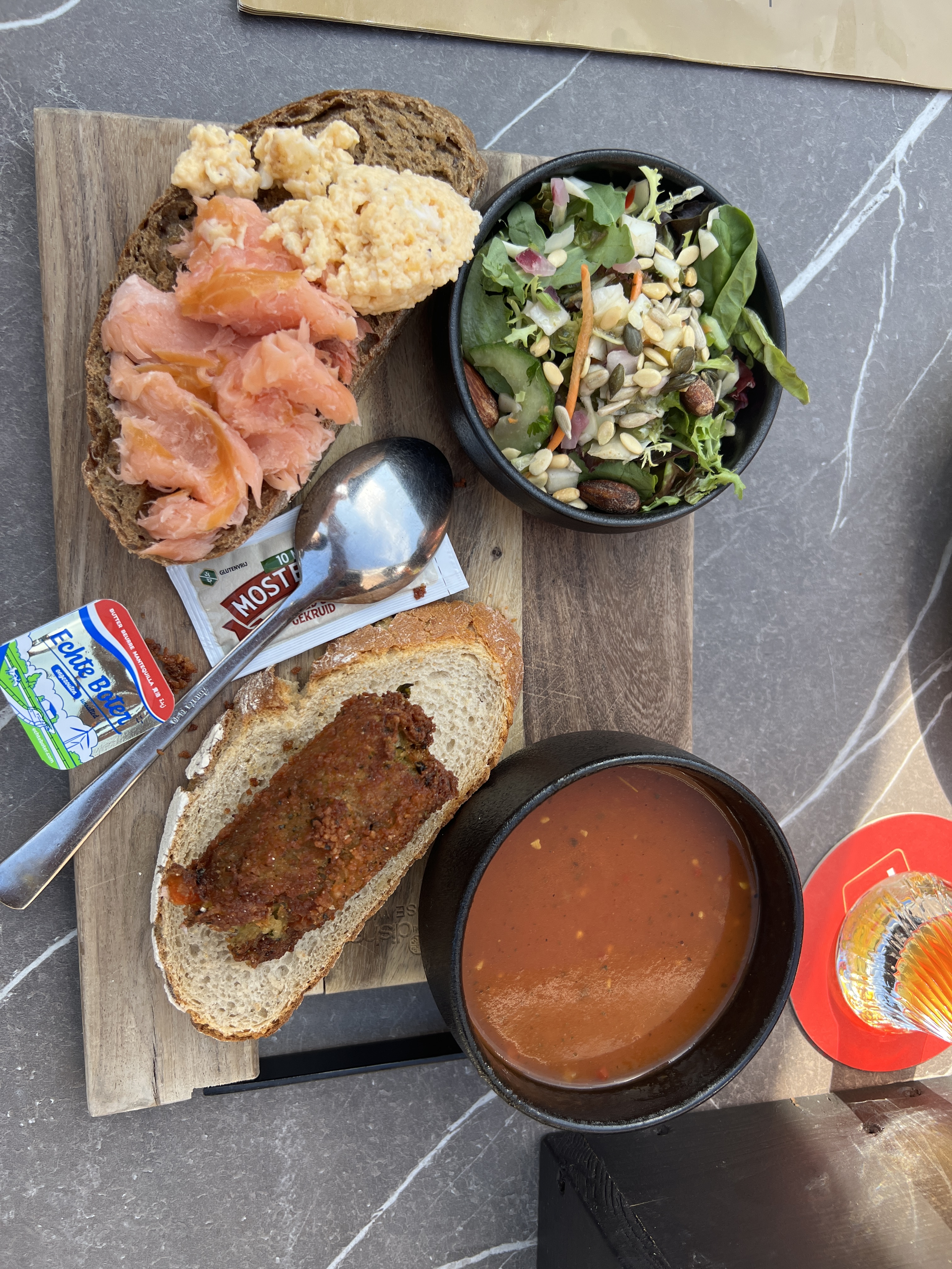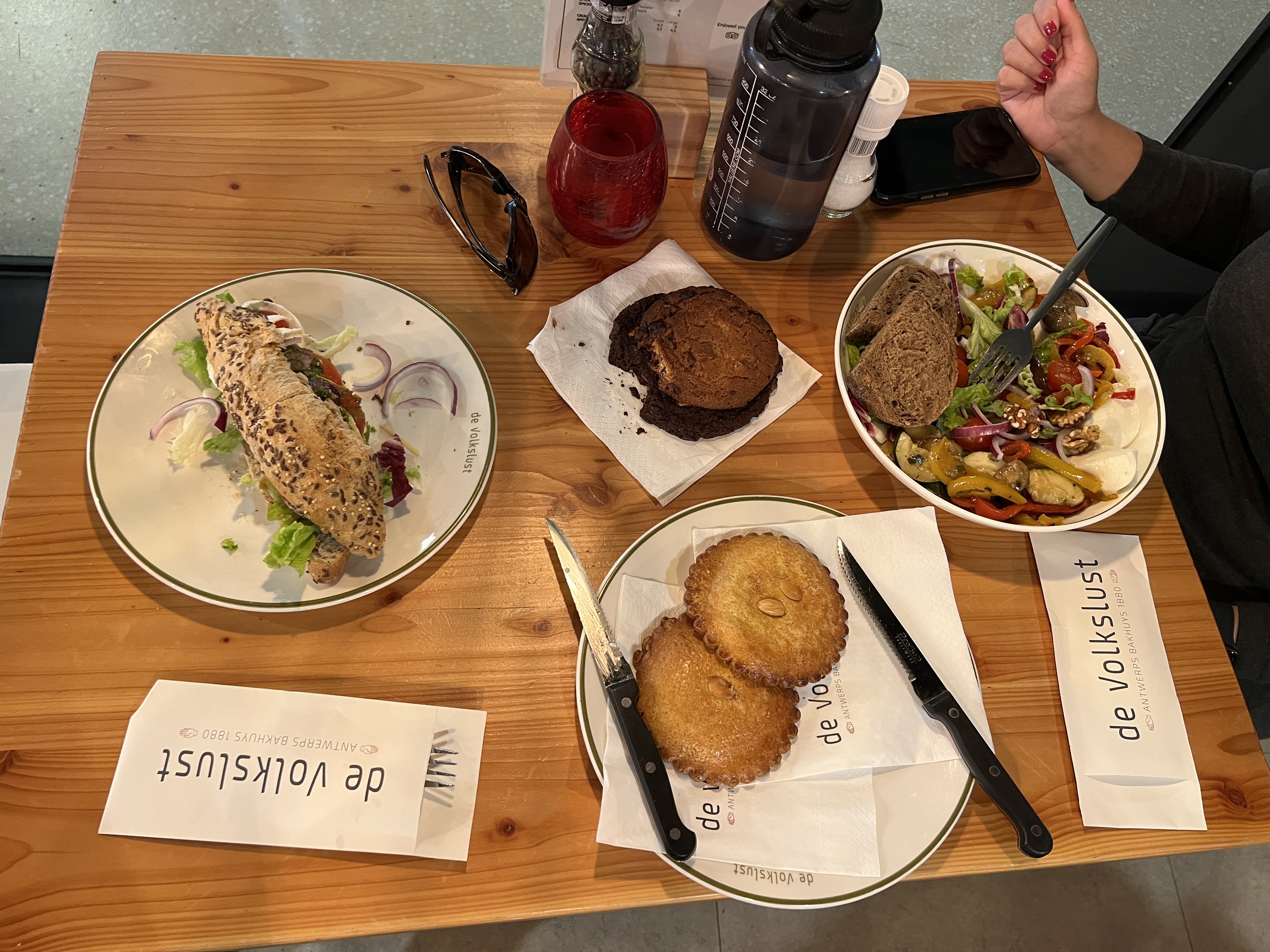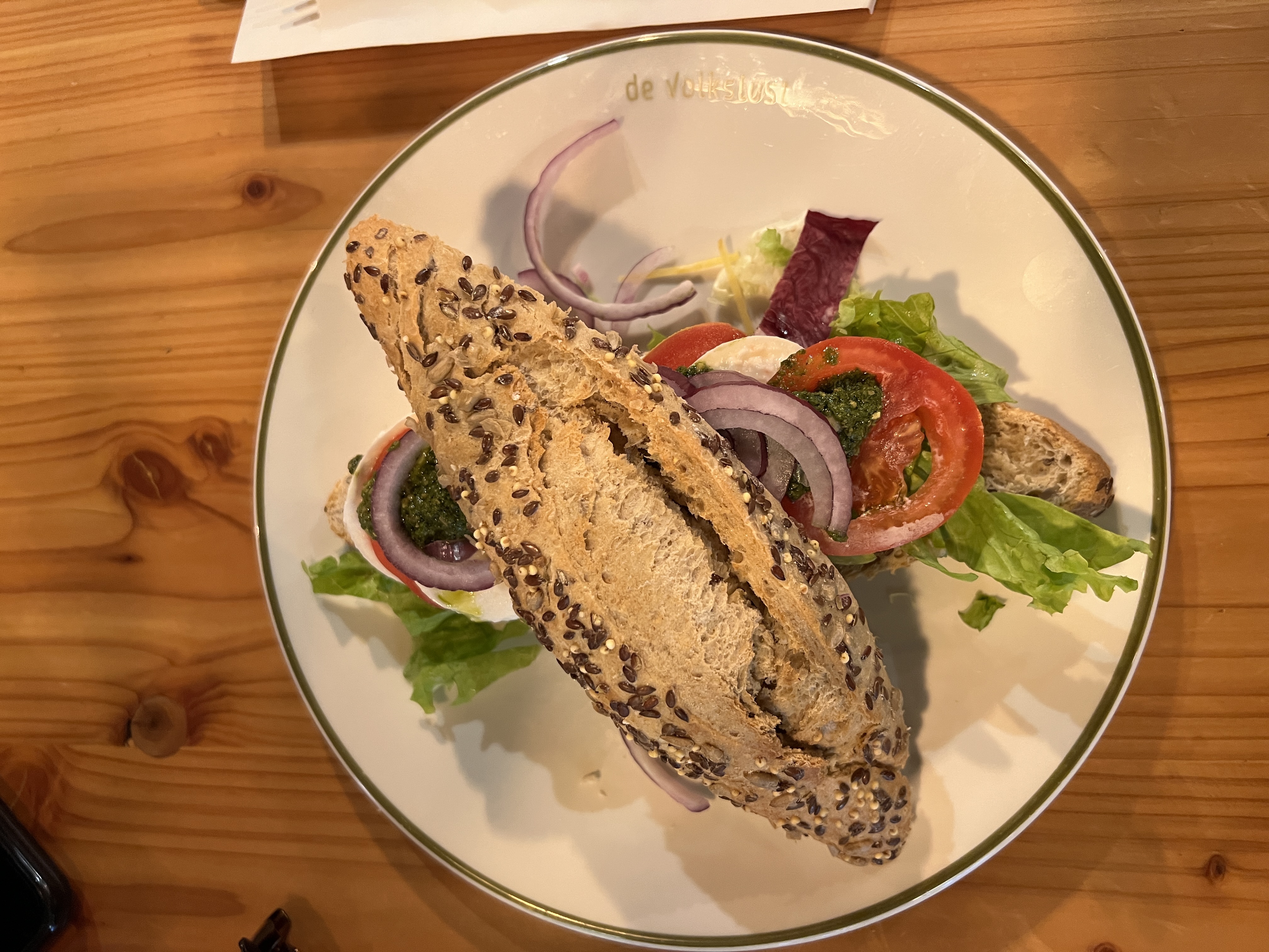 Walking around here we found a nice restaurant called de volkslust. We decided to have our dinner here. We took a caprice sandwich and a vegetarian salad with some cookies. These almond cookies are the best.