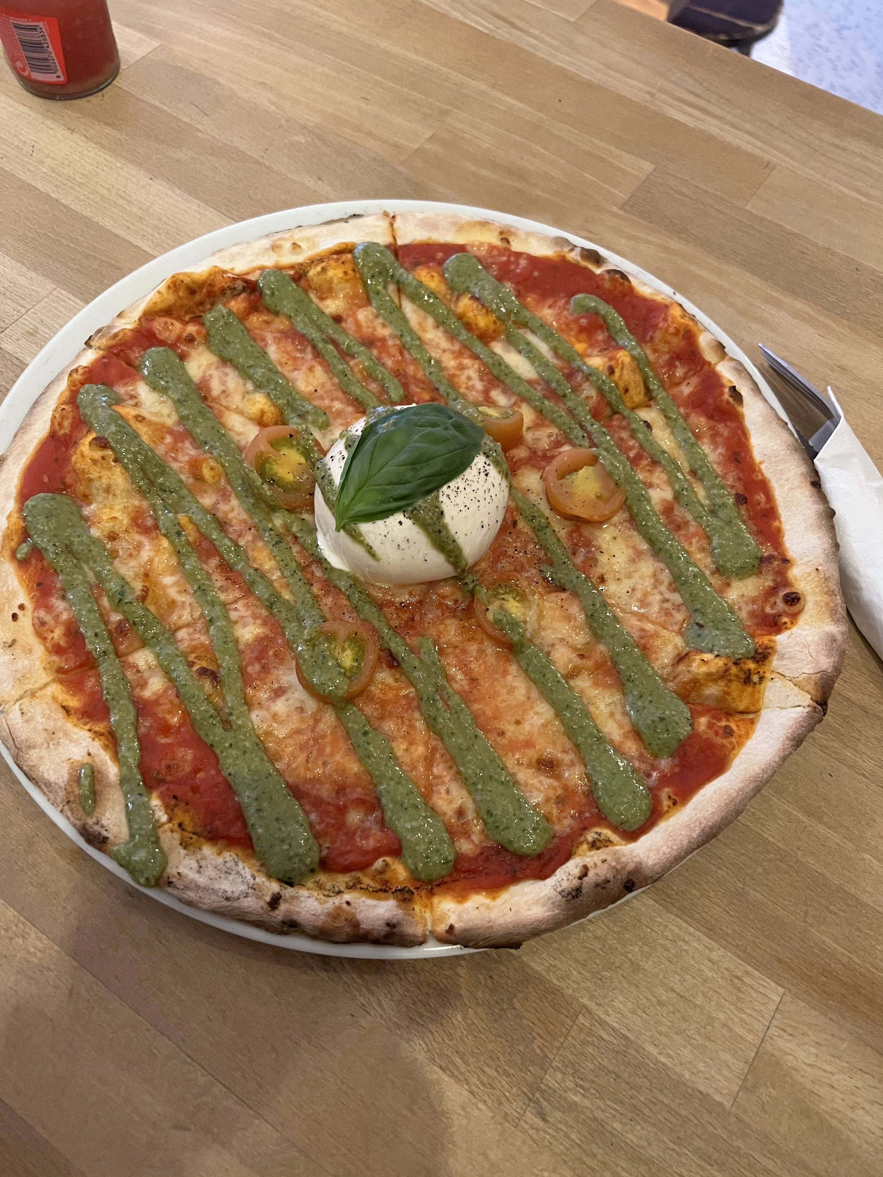 For dinner, we had pizza and beer… oh we have to talk about the pizza. We were in a pizza mood, and found this restaurant called ll Sogn. While ordering we noticed another pizza with this amazing looking ball of cheese. So of course we had to order it too. It looks like mozzarella. but when you cut into it goodness flows out of it. Found out later that they are called Burrata cheese. I can never have any other type of pizza now. Of course the rest of the pizza was pretty awesome too. Very home made taste. Loved it! Great way to end the day.