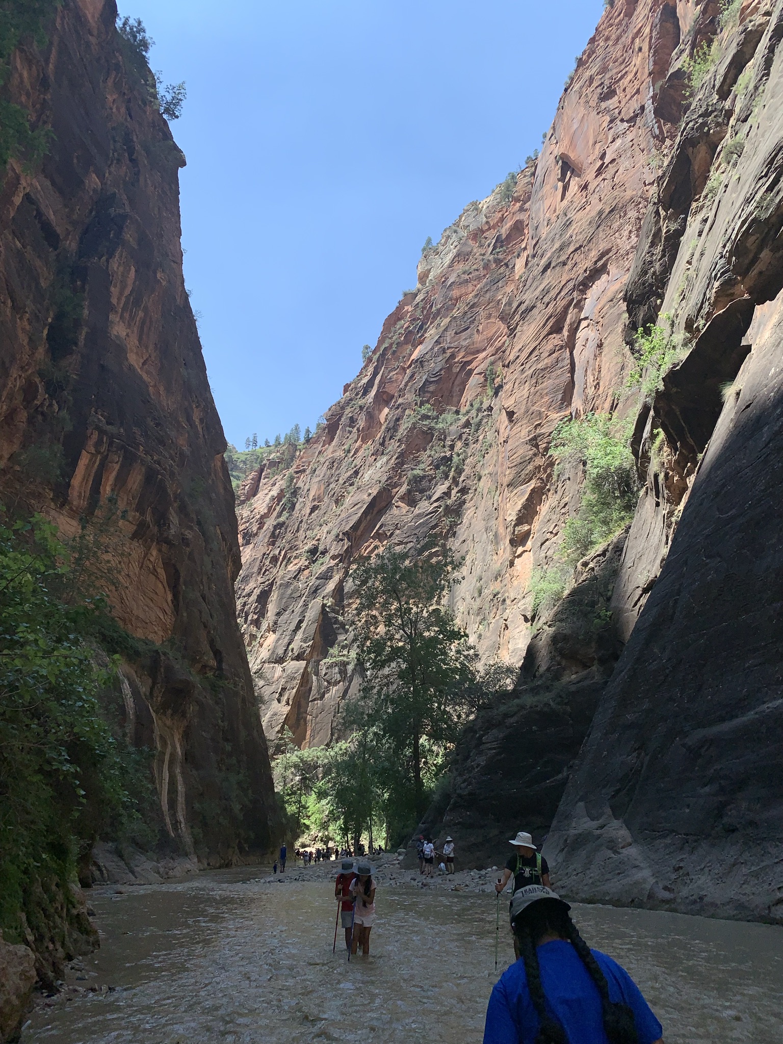 Stop 3: Next we headed straight to the Temple of Sinawava. Be warned, it is quite a bit of a hike to get from the shuttle stop to the main attraction. The kids were really sports and did not complain one bit. The temple is amazing. It is a stream that flows in the valley between to cliffs. We hiked for quite some time in the stream. We were knee deep in the water at some locations, it was really fun.